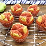 9 Pour red yeast batter into 6 lined baking cups (7.5-cm), then top with plain batter.