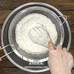 8 Sieve red yeast rice powder into the remaining batter, mix until well blended. (Reminder: **Red yeast rice is available at Chinese Medicine shop. Grind red yeast rice into fine powder using dry mill grinder and sift through before using. Keep unused portion refrigerated for storage.)