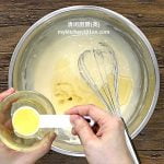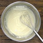 5 Add in cooled sugar syrup, mix until blended. Add in extra water if the batter is too thick (about 1-2 tbsps).