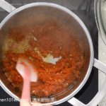 Add in 4 tbsps of cooking oil, heat paste over medium heat, continue stirring. Cook for 10-15 minutes until the oil separate out and the paste starts to have fragrance.