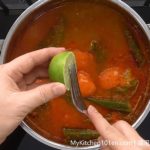 Trick for choosing younger Okra (ladies’ fingers) is to use your finger to feel the tip. Those with softer tips will be the youngest pods. Young okras are more tender with better texture. Add vegetables such as long bean, eggplant if you prefer.