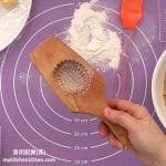 2 Lightly coat Angku mould with glutinous rice flour, tap off excess flour. (Reminder: The size of Angku mould used in this recipe is 35-gram mould, about 6 cm x 5.5 cm.)