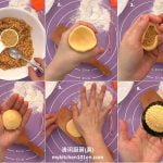 Lightly coat Angku mould with glutinous rice flour, tap off excess flour. (Reminder: The size of Angku mould used in this recipe is 35-gram mould, about 6 cm x 5.5 cm.)