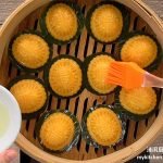 1 Prepare 20 pieces (7-cm) round banana leaves, coat with oil.