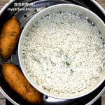 1 Pour orange sweet potato mixture over cooked glutinous rice.