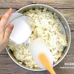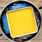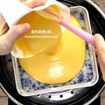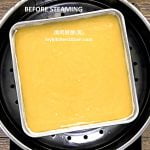 4 Transfer cooked glutinous rice to 8″ lined square baking pan, press until firm.