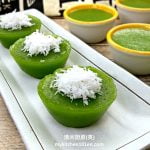 Pandan Kuih Kosui is made with fresh pandan juice, thus it has a very nice pandan fragrance, best served with fresh shredded coconut. You may replace sugar with dark brown sugar to turn it into Dark Brown Sugar Kuih Kosui.