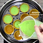 Transfer mixture to measuring cup. Put steamer rack with small cups on steamer, pour mixture into the cups until 85% full.