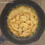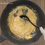 Boil the sugar syrup to between 150°C-160°C, the sugar syrup becomes thicker with darker color and you can almost smell a very mild caramel fragrance. At this stage, big bubbles in sugar syrup will be significantly less.