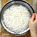 Blanch Laksa noodles with hot water, then rinse until cooled with water.