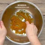 - Sieve the flour again into cooled pumpkin mixture, mix until blended. (Reminder: Make sure the pumpkin mixture is cooled before adding in flour.)