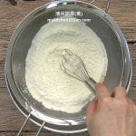 6 Sift together plain flour and baking powder. (Reminder: The quality of baking powder will decide the degree of blooming. If your baking powder has been bought for some time, it is suggested to buy a new bottle for huat kuih recipe.)