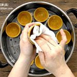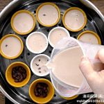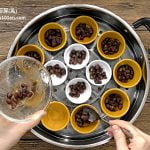 2 Lightly coat small porcelain cups (volume: 55 ml) with cooking oil, then arrange in steamer rack.