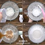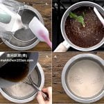 4 Drain soaked rice, put into blender, add in 40 g of plain water, blend on high speed for 1 minute. Stop and scrap the sides with spatula, then continue blending on high for another 2 minutes until smooth. Add in 125 g of red bean soup, blend until combined.