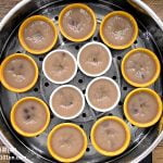 Lightly coat small porcelain cups (volume: 55 ml) with cooking oil, then arrange in steamer rack.