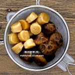 Drain soaked mushroom and scallop, keep the water from soaking ingredient.