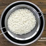 4 Drain soaked glutinous rice. (Reminder: The soaking time for different types of glutinous rice might be different, adjust the soaking time according to the type of glutinous rice you use.)