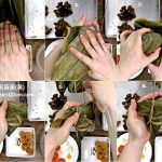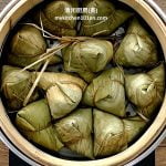 How to prevent rice dumpling from sticking to the bamboo leaf: 1. Don’t wipe the bamboo leaf to dry it up after cleaning, just drain off excess water. 2. Stir-fry the soaked glutinous rice with cooking oil before wrapping. 3. Use good quality glutinous rice with chewy texture (I use Pulut Susu). Low quality glutinous rice is usually soft and sticky.