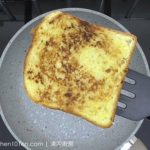 Toast garlic butter bread on hot pan, turn to medium heat and allow to crisp, or until it’s golden brown on both sides.