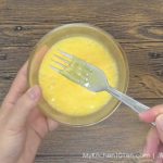 4 Put 2 eggs in a bowl, add salt to taste, beat with fork or whisk until well blended.
