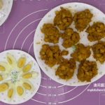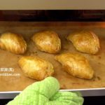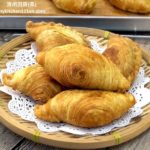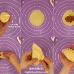 The crust of spiral curry puff (karipap pusing) is made with a combination of oil dough and water dough. Shortening is used to make the oil dough as it will yield a less oily crust. You may deep-fry or bake the curry puffs. Deep-fried curry puffs have a nice spiral pattern, but for baked curry puffs, the pattern is not obvious.