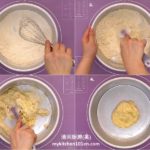 2 For water dough: Mix together plain flour, salt and icing sugar. Mix in margarine, then add in water gradually, mix until a dough is formed.