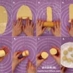 3 Divide oil dough (36 g each) and water dough (64 g each) into 5 portions.