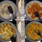 3 Preheat cooking oil, add in shallot and cook until fragrant. Add in marinated chicken meat and curry leaves, and cook for about 1-2 minutes (CORRECTION: The instruction at 1:18 in the video should be “Cook for about 1-2 minutes”, NOT “7-8 minutes”). Add in steamed potato, and mix well. Add in water, and cook until water is drying up.