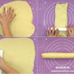 Roll out the rested dough into thin dough, fold into ⅓, roll out again into thin dough, then roll up the thin dough into a rod shape.