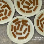 7. Take out 1 plate of steamed nian gao at a time, coat the pieces with shredded coconut while still hot.