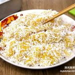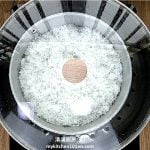 Steam fresh shredded coconut for 5 minutes. Add ¼ tsp of salt to steamed coconut, mix well. Cover with plate to prevent shredded coconut from drying.