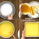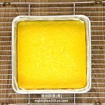 Sift glutinous rice flour. Add in pumpkin mixture gradually, mix until smooth, then pour into baking pan.