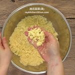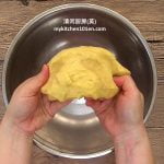 2. Add in water, knead until a dough is formed. Add in cooking oil, knead until well blended.
