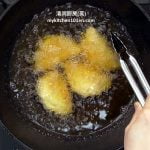 2. Preheat 700 ml of cooking oil to 170°C/340°F, turn to medium heat, deep-fry taro paste puffs until golden brown.