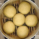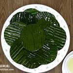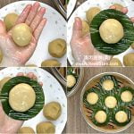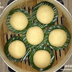 - Coat palms with oil, shape dough into a ball, smooth the surface, put onto a piece of banana leaf, press lightly with palm. Arrange in steamer rack.