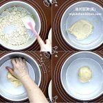 4 For oil dough: Sift plain flour, add in lard, mix until a dough is formed. Cover the dough, keep refrigerated while waiting for the water dough to rest. (Reminder: If your oil dough is drier, add in more lard. You may replace lard with pure ghee/clarified butter or shortening.)