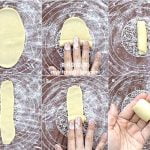 For oil dough: Sift plain flour, add in lard, mix until a dough is formed. Cover the dough, keep refrigerated while waiting for the water dough to rest. (Reminder: If your oil dough is drier, add in more lard. You may replace lard with pure ghee/clarified butter or shortening.)