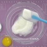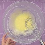 1. Preheat oven to 160°C (320°F). Whip egg whites until foamy and covered with mass of small bubbles. Add in melted butter and powdered sugar, beat until sugar dissolved. Tips: Melt butter in microwave or double boiler over medium-low heat.