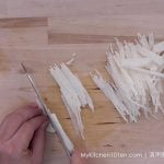 2 Wash and clean jicama and carrot, slice and cut into long thin strips (julienned).