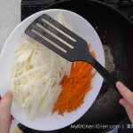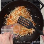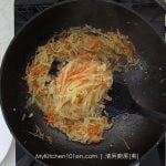 Add in julienned jicama and carrot, stir-fry until fragrant.